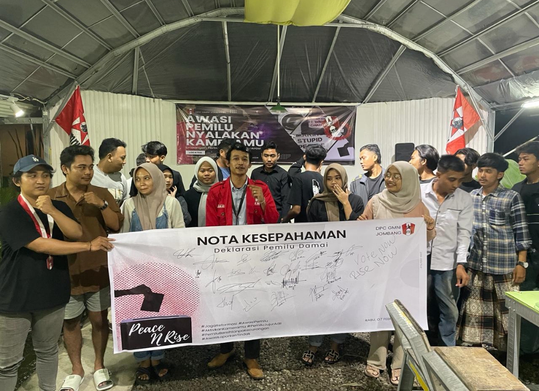 JOMBANG, KORAN-K.com – Menyikapi gejolak politik menjelang pelaksanaan pemilu 14 februari 2024, Gerakan Mahasiswa Nasional Indonesia (GMNI) Cabang Jombang menggelar acara mimbar bebas.