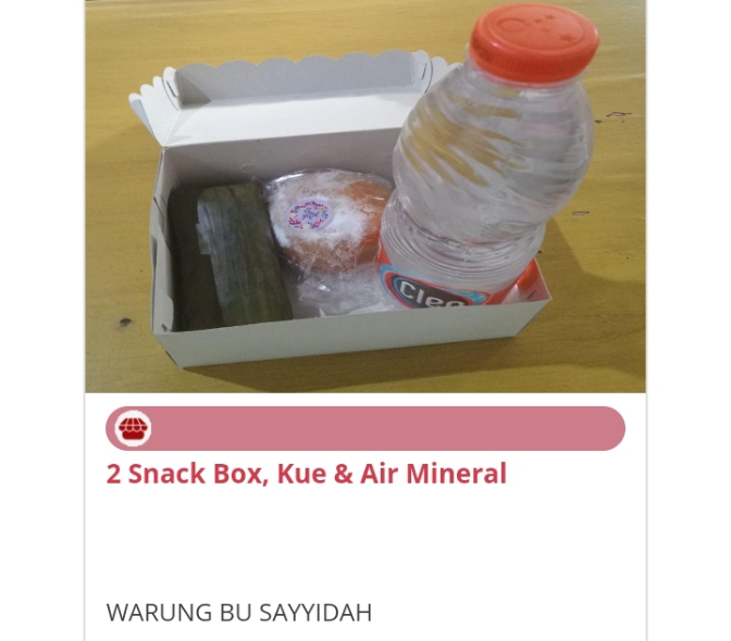 Hanya saja, item mamin apa yang dibeli dari Warung Bu Sayyidah, dokumen katalog tidak menjelaskan soal itu. Yang jelas, Warung Bu Sayyidah menyediakan 3 varian kue kotak plus air mineral dengan masing-masing varian dibandrol Rp 10 ribu per kotak.