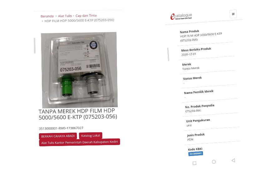 Disisi lain, jika merujuk etalase katalog nasional dan sektoral, ternyata penyedia Film Fargo HDP5000/5600 E-KTP (075202-056) dan Ribon YMCKH HDP5000/5600 (075203-056) tidak hanya CV Berkah Cahaya Abadi.