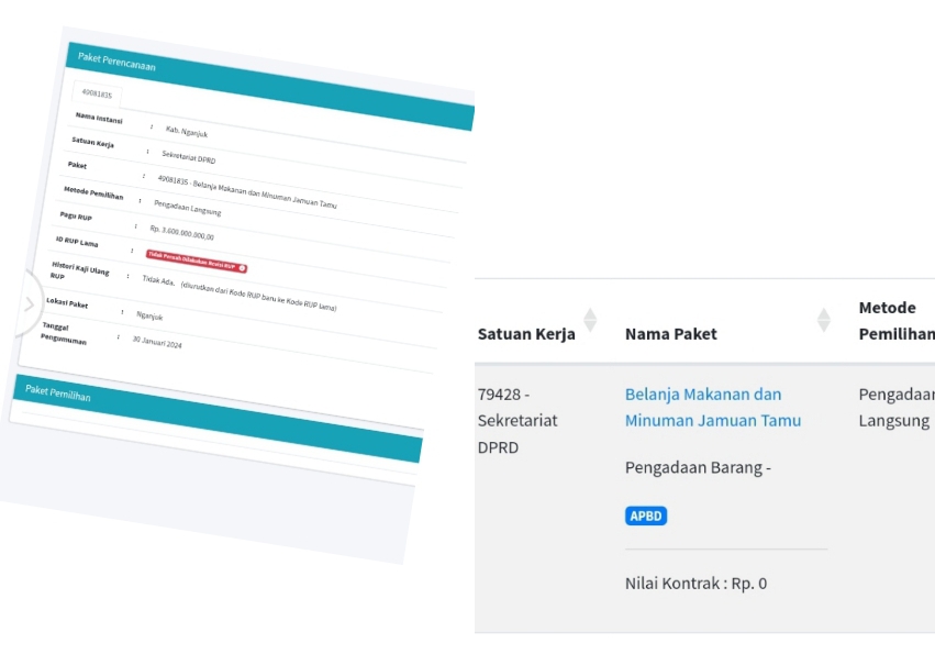 Sebagaimana diberitakan sebelumnya, bahwa paket pengadaan pakaian dinas dan mamin (makanan dan minuman) DPRD Kabupaten Nganjuk tahun anggaran 2024 disinyalir menyimpang dari ketentuan.
